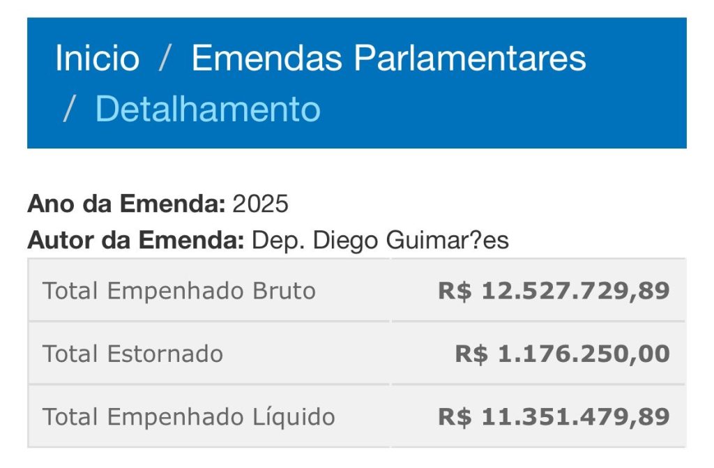 Documentos oficiais de transparência do Governo de Mato Grosso revelam que o deputado estadual Diego Guimarães destinou cerca de R$ 4,9 milhões de suas emendas orçamentárias para o Instituto para o Desenvolvimento Econômico, Ambiental, Esportivo e Social de Mato Grosso – IDEAES. A entidade, fundada em 1999 e presidida por Patrícia de Oliveira Peres, tem sede em Cuiabá e mantém um extenso cadastro de atividades junto à Receita Federal, que vai desde defesa de direitos sociais até ensino, saúde, cultura, esportes e serviços de assistência social.