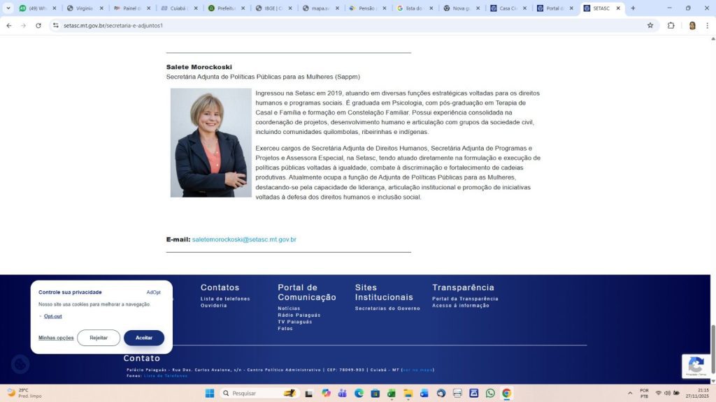 O governador Mauro Mendes e a primeira-dama Virgínia Mendes voltam a apostar em estratégias de marketing político para tentar encobrir o fracasso de suas ações nas políticas de proteção às mulheres. O anúncio do novo “Gabinete de Segurança da Mulher” soa como mais uma jogada de imagem, já que o próprio governo estadual já possui uma estrutura consolidada: a Secretaria Adjunta de Políticas Públicas para as Mulheres (Sappm), comandada por Salete Morockoski, com Superintendência de Políticas Públicas para as Mulheres e Coordenadoria de Políticas de Promoção de Direitos e Enfrentamento à Violência Contra a Mulher, todas vinculadas à Setasc.