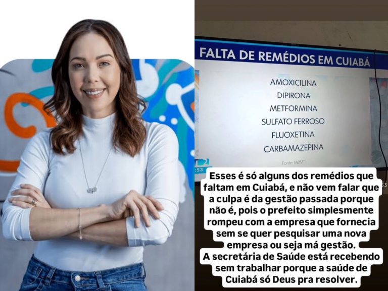 Mesmo sendo uma das mais fiéis aliadas do prefeito Abílio Brunini, a vereadora Maysa Leão usou suas redes sociais para romper o silêncio e fazer um duro desabafo sobre o colapso da saúde pública em Cuiabá. Indignada com a escassez de medicamentos essenciais como Amoxicilina, Dipirona, Metformina e Fluoxetina, Maysa responsabilizou diretamente o prefeito pela crise, afirmando que ele rompeu o contrato com a fornecedora sem apresentar alternativa viável.