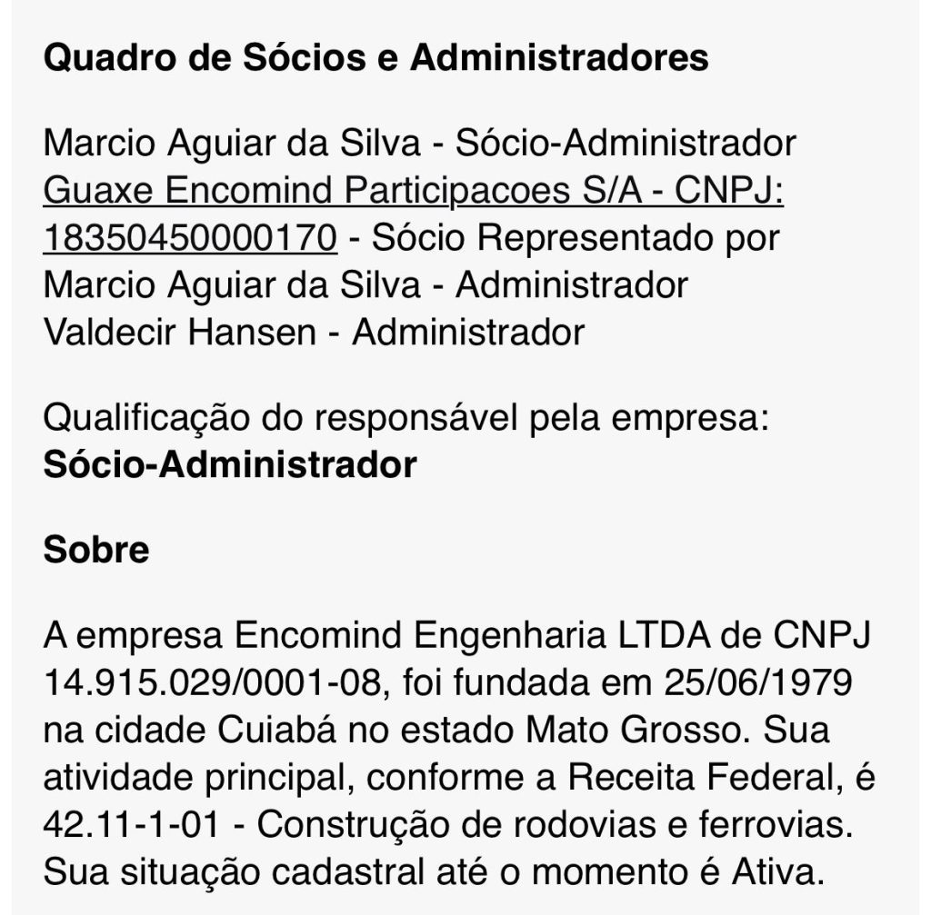 Não bastasse o vínculo societário da esposa do governador com um consórcio ativo, o mesmo aglomerado empresarial divide protagonismo com a Encomind Engenharia Ltda — uma das construtoras mais aquinhoadas em contratos de infraestrutura no governo Mauro Mendes, ora individualmente, ora em parceria com outras empreiteiras. A Encomind/Gauxe, inclusive, é uma das responsáveis pela execução de trechos do sistema BRT em Cuiabá e Várzea Grande, licitação promovida justamente pela gestão do marido da empresária.