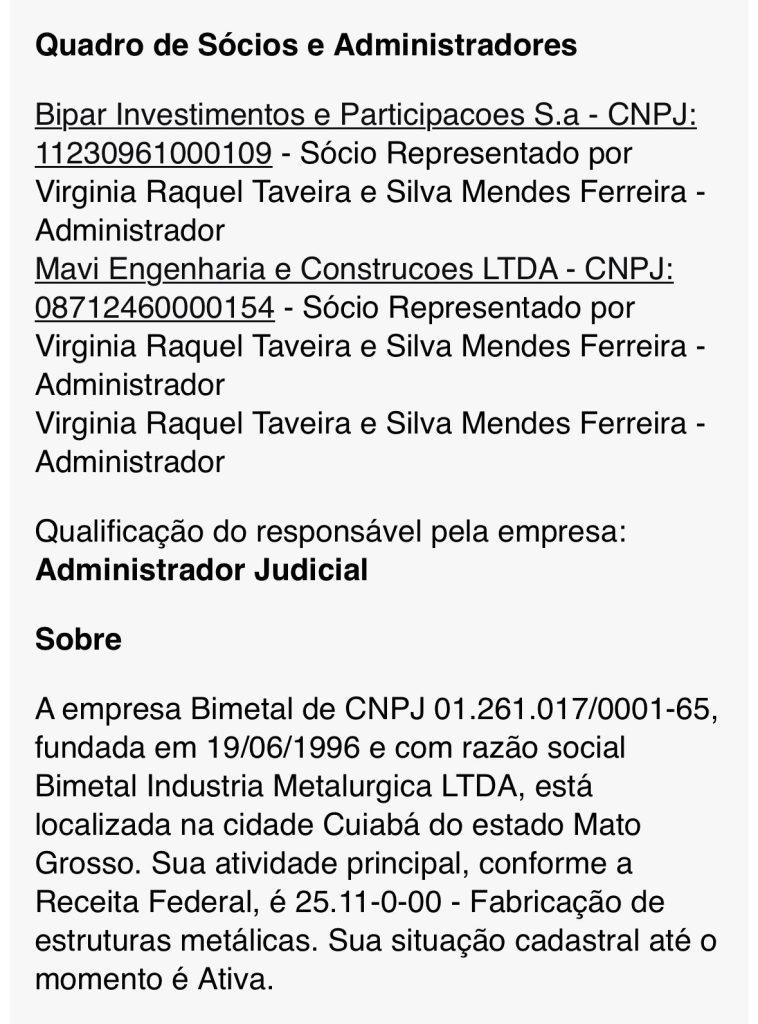A presença da primeira-dama de Mato Grosso, Virgínia Mendes, como administradora de uma das empresas integrantes do Consórcio Centro Oeste — o mesmo consórcio que reúne a empreiteira Encomind, com o Grupo Guaxe — acende um alerta grave sobre conflitos de interesse, favorecimento e sobreposição de funções entre o público e o privado no coração do Palácio Paiaguás. Documentos da Receita Federal comprovam que a Bimetal Indústria Metalúrgica, da qual Virgínia é administradora, integra como sócia consorciada o grupo empresarial que, atualmente, detém obras milionárias no estado, incluindo contratos no polêmico BRT.